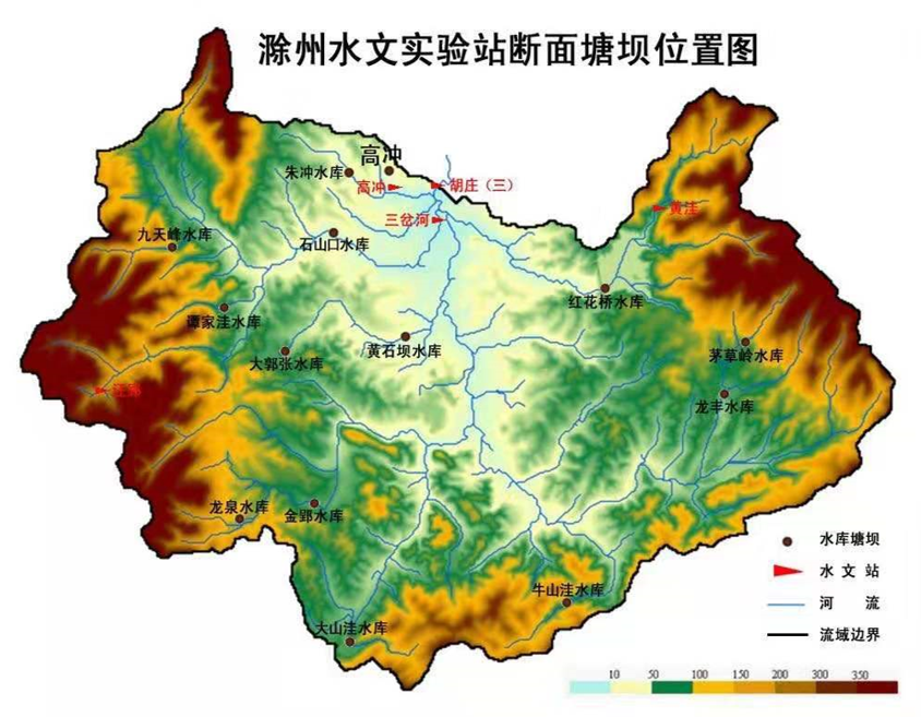滁州實驗基地面積約80平方公里,囊括了14個水庫,項目選取其中9個點對水位進行監(jiān)測。所有監(jiān)測點的數(shù)據通過Radio數(shù)傳的方式實時無線傳輸至數(shù)據服務器,各監(jiān)測點到服務器的直線距離最長約10公里,部分監(jiān)測點至服務器間有山體阻隔信號。