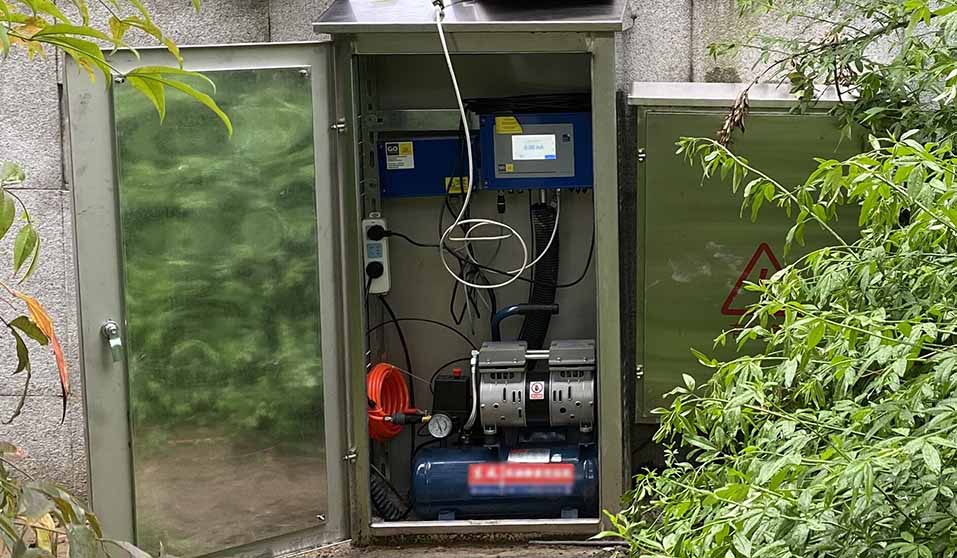 此次Bluebox ISA安裝于水城五星級酒店,用于監(jiān)測該酒店的污水井水質(zhì),屬于鹽城市區(qū)污水處理信息系統(tǒng)的一部分。探頭直接置于污水井內(nèi),通過光纜與機(jī)柜內(nèi)的Bluebox控制器相連。Bluebox控制器除用于采集存儲和傳輸數(shù)據(jù),還可控制高壓氣閥的開閉。在每次檢測前,系統(tǒng)使用高壓空氣對ISA透鏡進(jìn)行自動(dòng)清潔,這樣即使在污水環(huán)境中仍能長期保持探頭的準(zhǔn)確性。