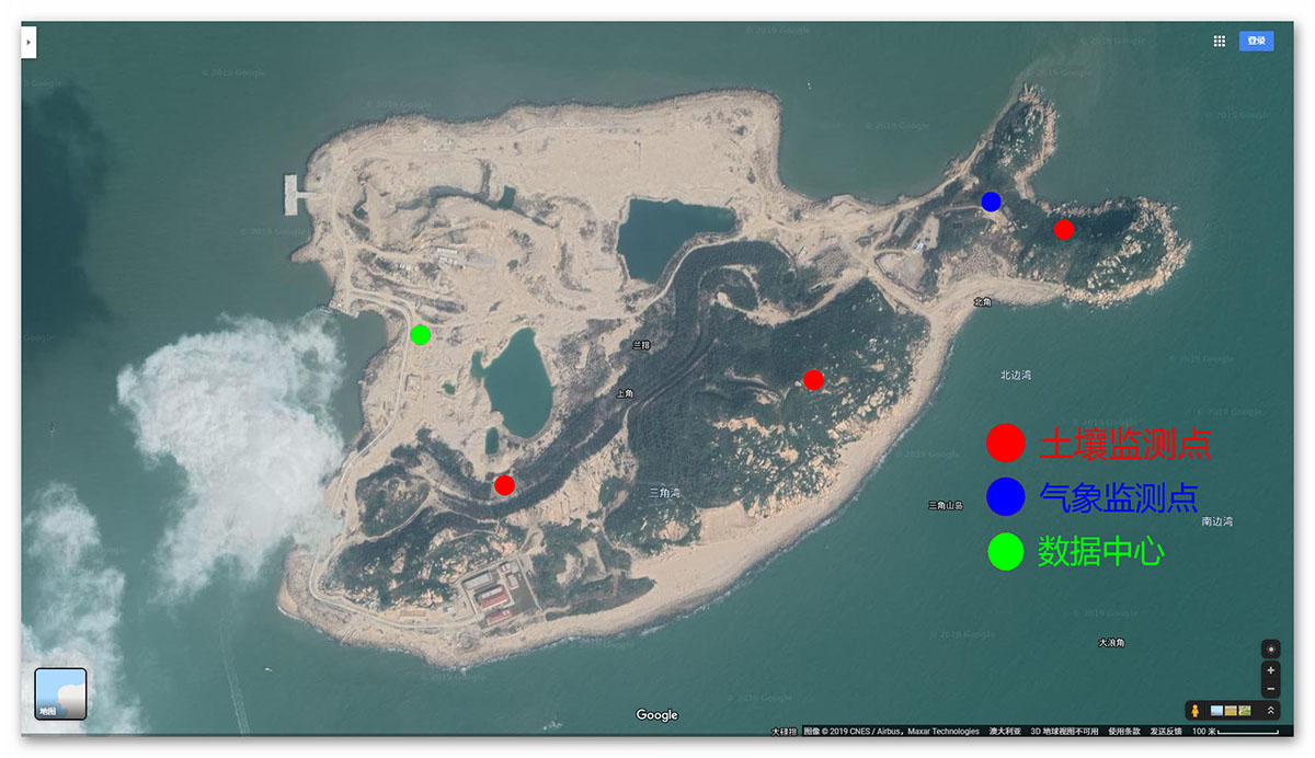 2020年7月,三角島土壤氣象無線監(jiān)測網(wǎng)完成安裝調試,順利開始自動監(jiān)測。監(jiān)測網(wǎng)不依賴任何通訊基礎設施,采用Radio廣播數(shù)傳和GRABS傳輸架構,對三角島上的氣象、土壤參數(shù)進行無線實時監(jiān)測,并可添加更多監(jiān)測指標擴展成為生態(tài)環(huán)境綜合監(jiān)測網(wǎng)。