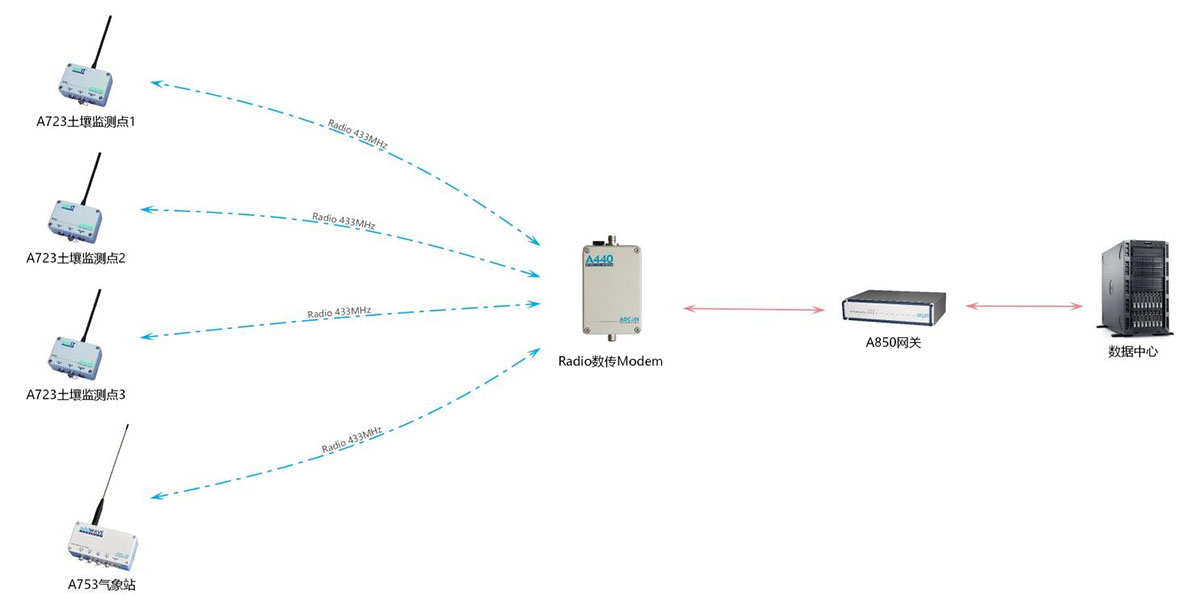 由于無人島缺乏移動通訊基礎設施,在無線傳輸方式上采用433MHz Radio技術,點對點最大距離可達20km,并且可采用多種中繼跳轉方式延長傳輸距離、適應地形變化。無線傳輸架構采用GRABS全地形全天候無線監(jiān)測技術,由智能網(wǎng)關進行系統(tǒng)管理,可以解決任何條件下的無線數(shù)據(jù)傳輸問題,并具備自動恢復、自動續(xù)傳、高并發(fā)協(xié)同等能力,可保證數(shù)據(jù)傳輸零丟失。